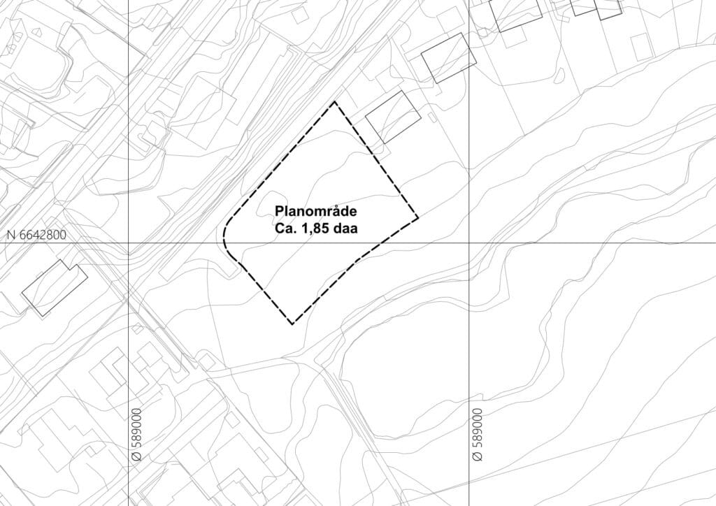 Planområdet omfatter et areal på ca. 1,85 daa, og omfatter både en eldre reguleringsplan, samt en godkjent bebyggelsesplan. Avgrensingen tar utgangspunkt i de regulerte formålsgrensene som eiendommen grenser mot. Planområde vil kun omfatte den aktuelle boligeiendommen gbnr. 16/191 og derfor vil man heller ikke ta stilling til andre forhold i gjeldende plan enn avkjørselspunkt.